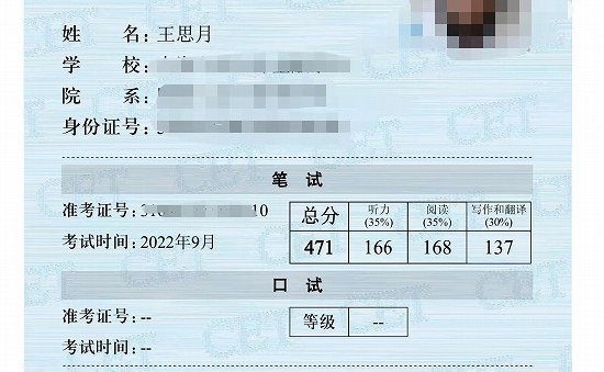 王思月通过大学英语四级考试
